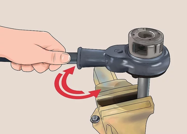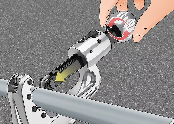 Donji dio rezača cijevi zakrenite u smjeru kazaljke na satu, tako da se alat čvrsto pričvrsti na utor.