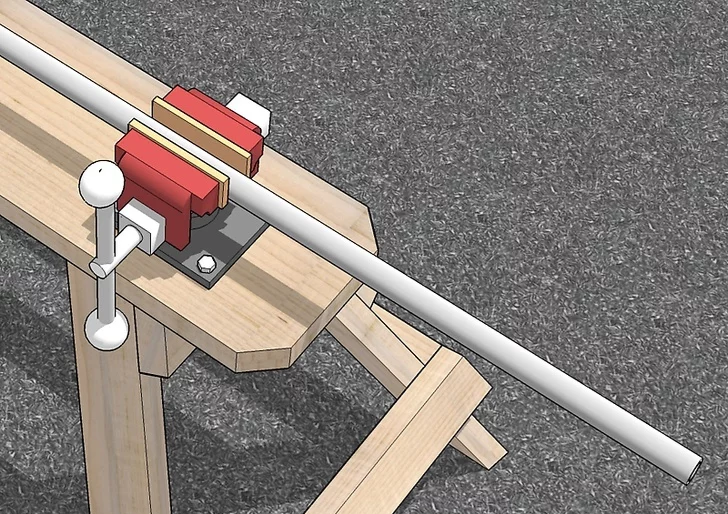 Otvoriti stezaljku pričvršćenu za radni stol kako bi cijev mogla stati unutra.