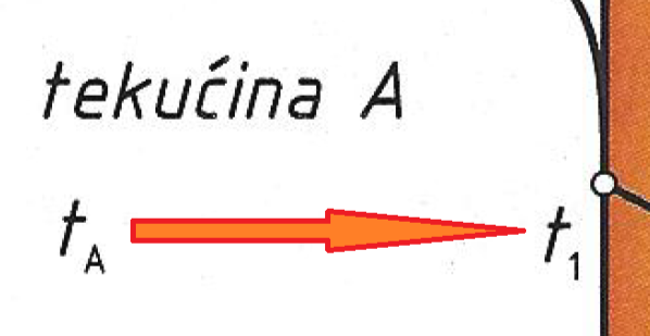 - STRUJANJEM (konvekcijom) toplina se prenosi s tekućine A, na stijenku (t1) i