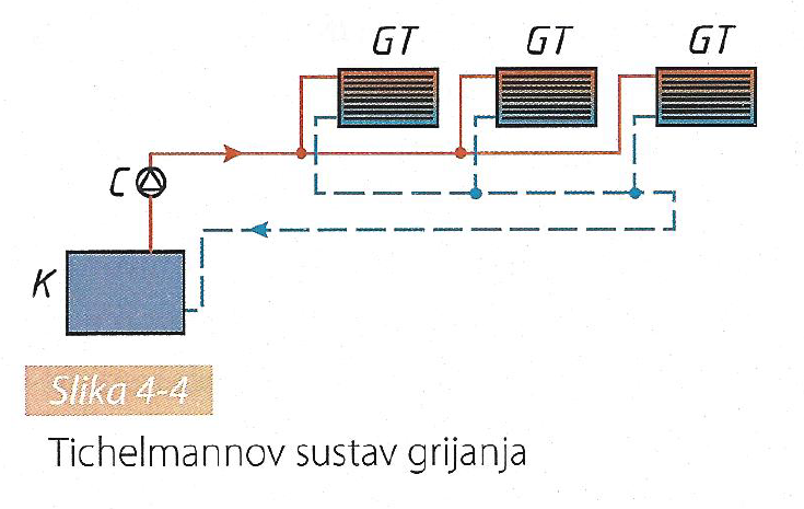 Ovaj sustav grijanja je kombinacija jednocjevnog i dvocjevnog sustava (slika 4-4).