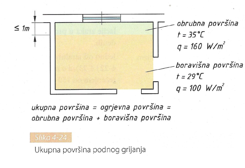 Pri dimenzioniranju podnog grijanja važna je veličina ogrjevne plohe (slika 4-24).