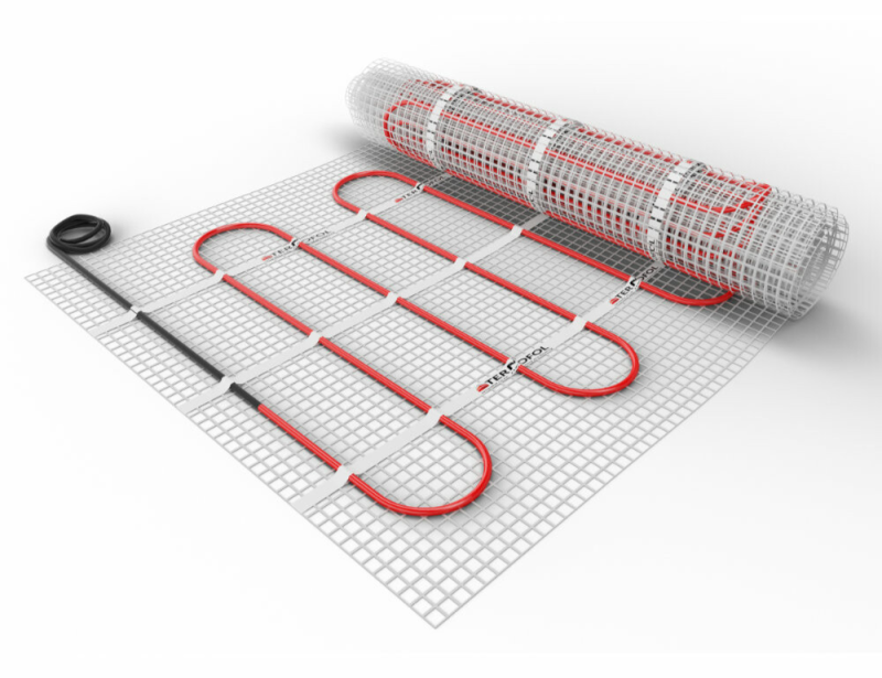 Jedno od atraktivnijih grijanja svakako je električno podno grijanje (Slika 4-22 i 4-23), a u njegovoj izradi prednjači tvrtka Danfoss, s toplinskim opterećenjem od 150 W/m2, za slučaj kada su pločice na podu, a kada je drveni pod, tada je opterećenje do 100 W/m2.